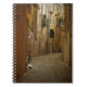 Spiral notebook of a dark, narrow alley with laundry hanging to dry in the city of Naples in the south of Italy.