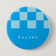 Dark and light blue square blocks pattern 7.5 cm round badge