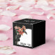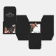 This elegant favour box is designed to leave a lasting impression on your guests. The black background is adorned with vibrant orange and blush florals, complemented by lush greenery, adding a dramatic yet sophisticated touch. The front of the box displays a bold "Thank You" message, while the top reads, “Thank you for being our guest,” which can be customised to your preferred wording. Additionally, the names and date below this message are also customisable, allowing you to add a personal touch to each favour. Perfect for weddings or special events, this box combines style and gratitude in a beautifully unique way.