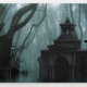 Spooky and creepy Dark Graveyard Halloween Party invitation.
