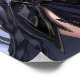 A striking anime-style portrait of a mysterious dark enchantress clad in intricate black armor adorned with sharp, angular designs and blue gemstones. Her long flowing purple hair and captivating violet eyes contrast with the dark, elegant armor, giving her an aura of both beauty and formidable power. The background is a simple gradient of black, emphasizing her commanding presence.
