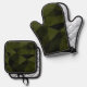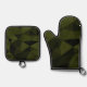 Dark army green black geometric mesh pattern cool oven mitt & pot holder set