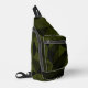 Dark army green black geometric mesh pattern cool sling bag