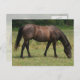 Dark Bay Horse Grazing in Grassy Field Postcard
