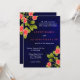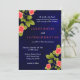 Dark Blue and Coral Rose Flower Wedding Invitation