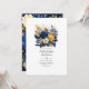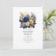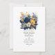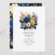 Dark blue and gold floral wedding invitation. Ideal for a garden wedding. The QR code on the reverse directs to your wedding site where people can learn more and rsvp