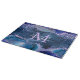 This cutting board features an elegant and glamourous dark blue agate marble background with faux blue glitter accents. The monogram combines handwritten script and modern sans serif fonts for a classy and sophisticated look. This will make the ideal gift as it can be customised with a name and initial. The sequins and distressed texture creates the perfect blend of chic and grunge.