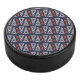 Dark Blue and Red Geometric Triangles Pattern Hockey Puck