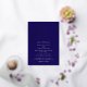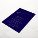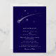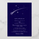 This elegant wedding invitation features a deep dark blue background with white celestial artwork. The design includes shooting stars, delicate constellations, and fine silver foil accents. The layout is clean and balanced, creating a timeless and romantic look.