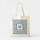 Dark Blue and White Stripes Custom Monogram Tote Bag