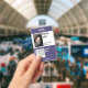 Dark Blue Background Logo Template Employee Staff ID Badge