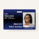 Dark Blue & Black Ombre Smiling Hello Behind Mask ID Badge