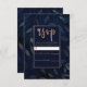 Dark Blue Botanical Leaves Rose Gold Wedding RSVP