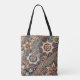 Dark Blue Brown Indonesian Batik Floral Pattern Tote Bag