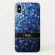 Dark Blue deep shiny faux glitter sparkle Monogram Case-Mate iPhone Case