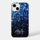 Dark Blue deep shiny faux glitter sparkle Monogram iPhone Case
