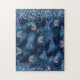 Dark Blue Design with Turquoise & Pink Leaves Jigsaw Puzzle