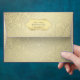 This envelope design radiates elegance with its rich golden tones. Intricate gold damask floral patterns enhance the corners, creating a luxurious and regal effect. At the centre, a golden frame beautifully highlights the recipient’s details, giving the design a sophisticated and celebratory appearance. The shimmering gold palette makes this envelope perfect for weddings, anniversaries, gala events, and other grand occasions.