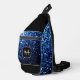 Blue faux glitter sparkles Custom Monogram Sling Bag. Cool fashion accessory bag for her. Beautiful girly glamourous blue shiny glitters sparkles design. Create a unique and personalised bag with a custom touch! Modern monogram with your initial and your name for that extra personal flair. We use Photo of sparkles, not real glitter!