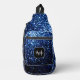 Blue faux glitter sparkles Custom Monogram Sling Bag. Cool fashion accessory bag for her. Beautiful girly glamourous blue shiny glitters sparkles design. Create a unique and personalised bag with a custom touch! Modern monogram with your initial and your name for that extra personal flair. We use Photo of sparkles, not real glitter!