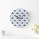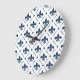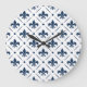 Dark blue Fleur De Lis pattern on white background Large Clock