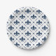 Dark blue Fleur De Lis pattern on white background Paper Plate