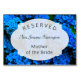 Reserved for the Mother of the Bride, or whomever, this table sign contains images of dark blue hydrangea flowers. The quatrefoil panel holds three lines of text, with name in the centre, and can be customised for any member of the wedding party.