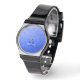 Dark blue geometric mesh pattern Monogram Watch. Personalise with your custom initial and name. Blue gradient geometric mesh pattern design.