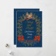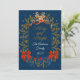 Elegant non-photo holiday card featuring a festive Dark blue gold design adorned with ornaments and reindeer peeking. Personalise the card by adding a custom greeting, your family name, and the year. The Christmas design holiday card reverses to your message displayed in gold lettering and a dark blue background with subtle snowflakes.