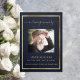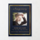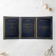 Dark blue gold photo tri-fold funeral program announcement