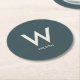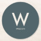 Dark Blue Green Monogram Personal Party Round Paper Coaster