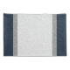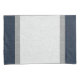 A symmetrical simple stripe, a modern abstract pattern in dark blue, grey and ash white. There is a visual graphic crosshatch or burlap like pattern through the colour bands. Perfect for the man cave, boys room or dorm.
