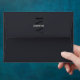 Simple and minimal dark blue envelope with modern vertical monogram and your name.