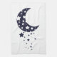 Dark blue moon and stars silhouette magical sky tea towel