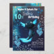 Dark Blue Neon Axolotl Birthday Party Invitation
