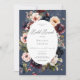 Indulge in the captivating allure of our dark and moody blue bridal brunch shower invitation, where sophistication meets romance in a harmonious blend of colour and elegance. Against a backdrop of rich navy blue, this invitation sets a dramatic tone. Nestled within a white oval text box, your details take centre stage, surrounded by a lush arrangement of watercolor poppies, zinnias, and other flowers in shades of navy blue, burgundy, soft blush, and gold, complemented by dark sage green foliage. Each petal and leaf whispers tales of passion and enchantment, setting the stage for a celebration that's as memorable as it is magical. Created by Simply Farmhouse Press.