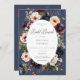 Dark Blue Oval Floral Frame Bridal Brunch Invitation