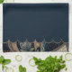 This pretty kitchen towel makes a great first impression. Use in the kitchen or your bar area. The dark blue coloured towel looks like it has a scalloped edge over a bold dark blue and tan paisley patterned edge. The design is repeated on the opposite end of the towel.