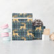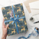 Dark Blue Plaid with Faux Gold Reindeer Holiday Wrapping Paper