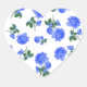 Dark Blue Roses floral pattern on White Heart Sticker