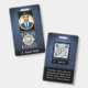 Designed for law enforcement, private security, and IT professionals, this customisable ID badge template balances function with style. The front features a dark denim-blue textured background with a subtle faux glitter finish, along with space for a photo, logo, and name. The back includes a scannable QR or barcode template and customisable text fields for contact info or social handles. Durable design meets professional utility.