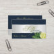 Dark Blue Silver Decor Rose Flower with Monogram Business Card