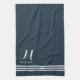 Dark Blue Sophisticated Stripes and Monogram Tea Towel