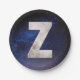 Dark Blue Space Galaxy Letter Z Paper Plate