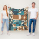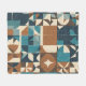 Dark Blue, Teal, Brown, and Tan Geometric Pattern Fleece Blanket