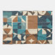 Dark Blue, Teal, Brown, and Tan Geometric Pattern Tea Towel