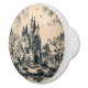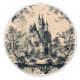 Toile de jouy pattern in deepest blue on aged ivory background. A romantic fairytale French castle and landscape. Classic toile pattern with a Gothic look..