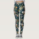 Dark Blue Vintage Style Garden Flower Pattern Leggings