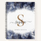 Dark Blue Watercolor Gold Monogram Script Notebook
