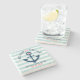 Dark Blue Wedding Nautical Anchor Mint Stripes Stone Coaster